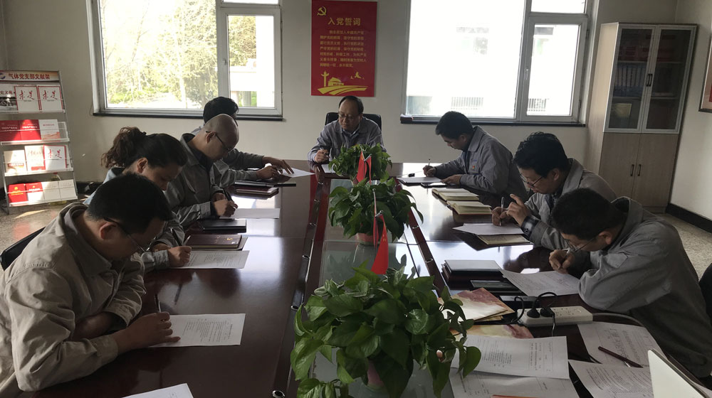 4月12日上午在气体党支部活动室召开党员大会,全体党员、科级以上干部出席会议,会上气体党支部书记任志平作关于党风廉政建设教育宣传月的活动安排。